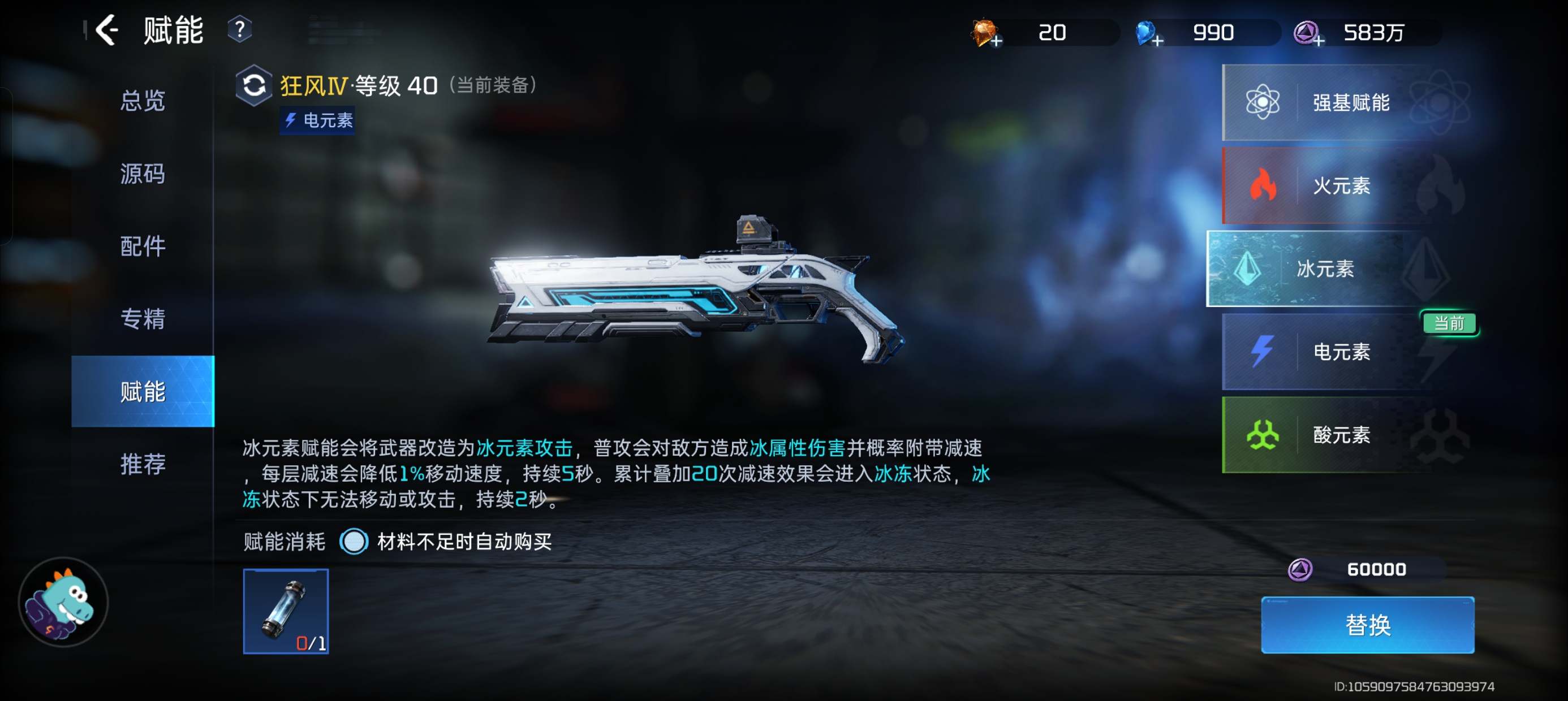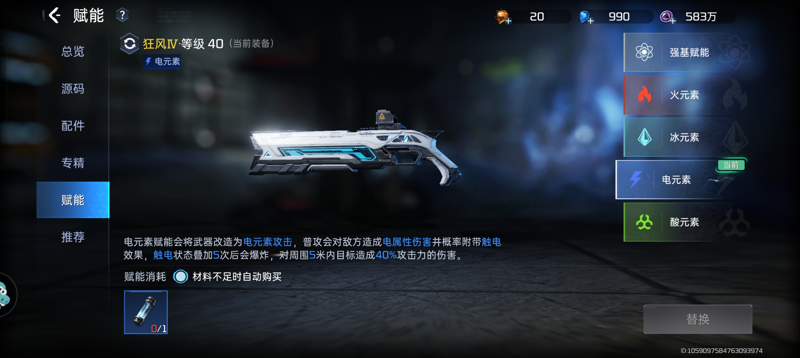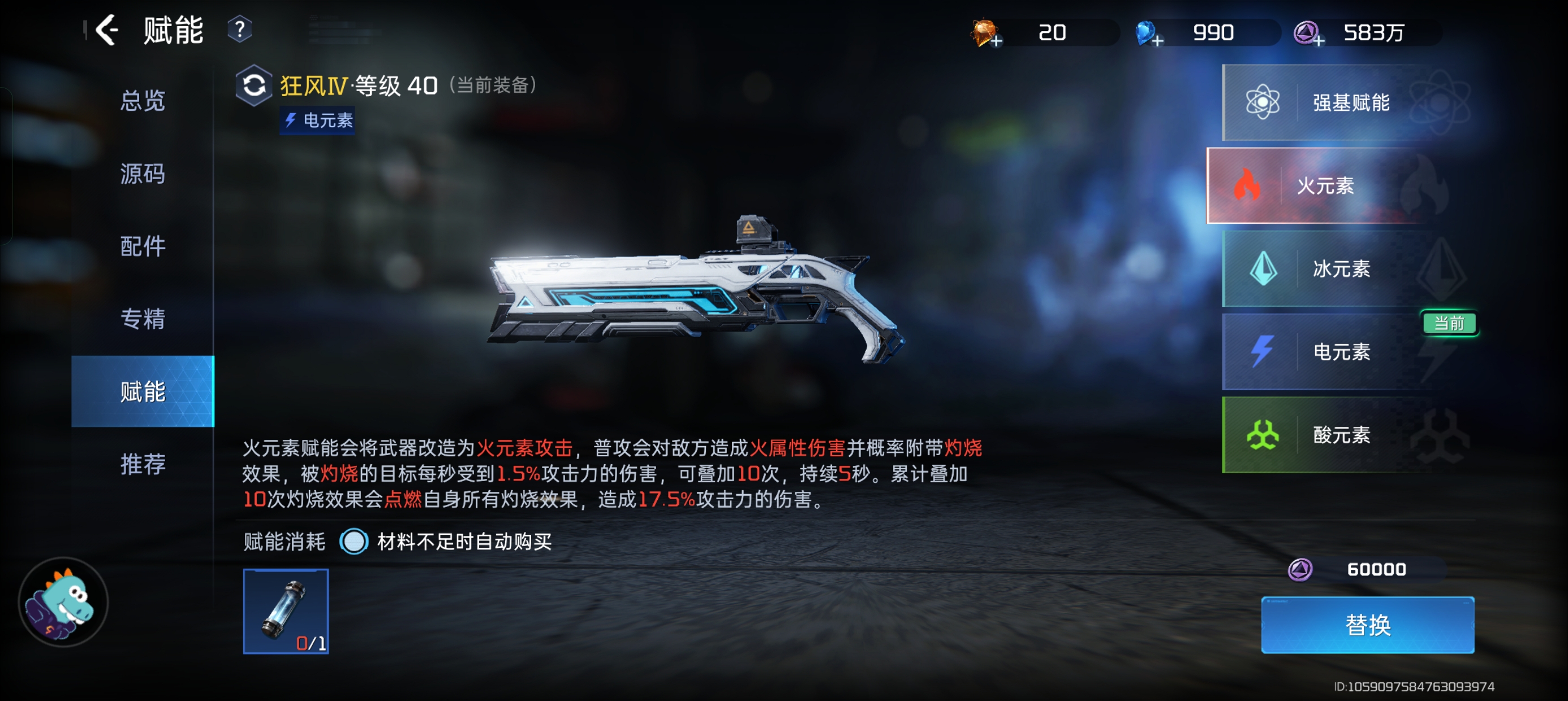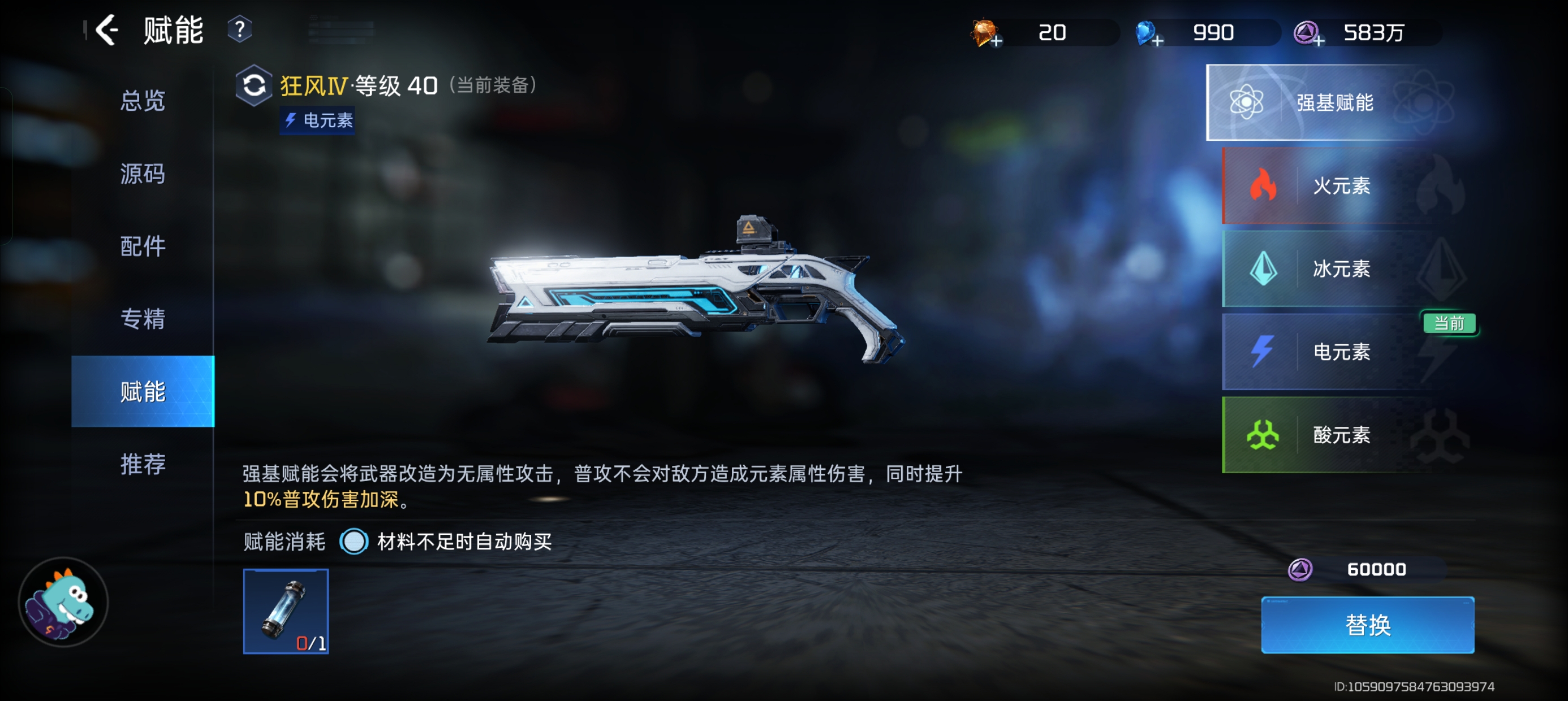 武器赋能一共有5种,分别是:强基赋能、火元素、冰元素、电元素、酸元素。