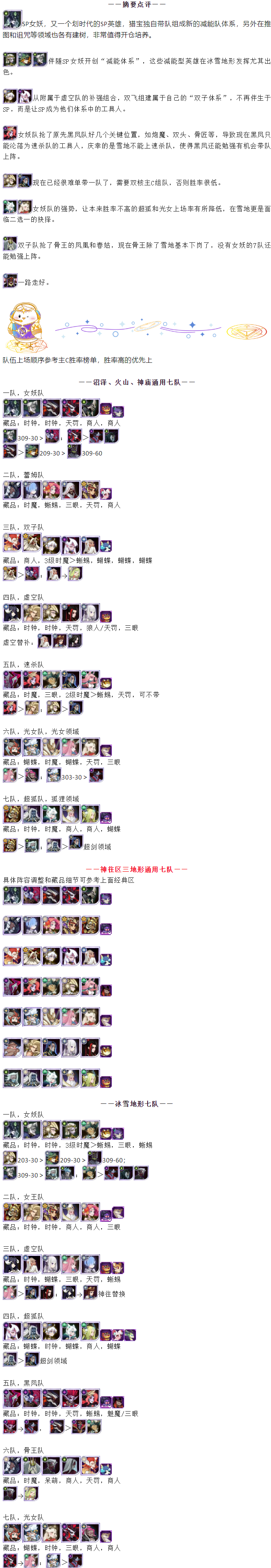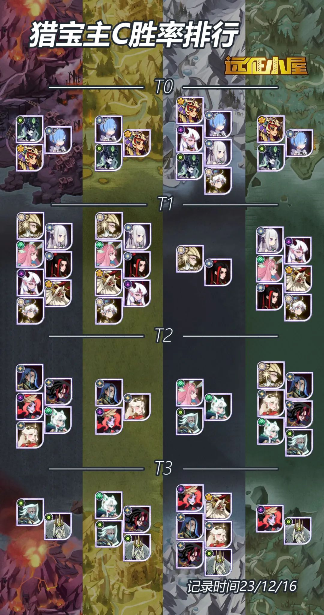 女妖远征,启动!猎宝角逐SP女妖版本主C梯队及多队推荐剑与远征 - 攻略星发布于 2023-12-16关注 T0:胜率70~79%T1:胜率60~69%T2:胜率50~59%T3:胜率50%以下本次主C胜率采样于SP女妖上线后,每期猎宝两次结算前一天的胜率而综合得出,数据并非完全科学,仅供参考。 作者:光环剑与远征小屋