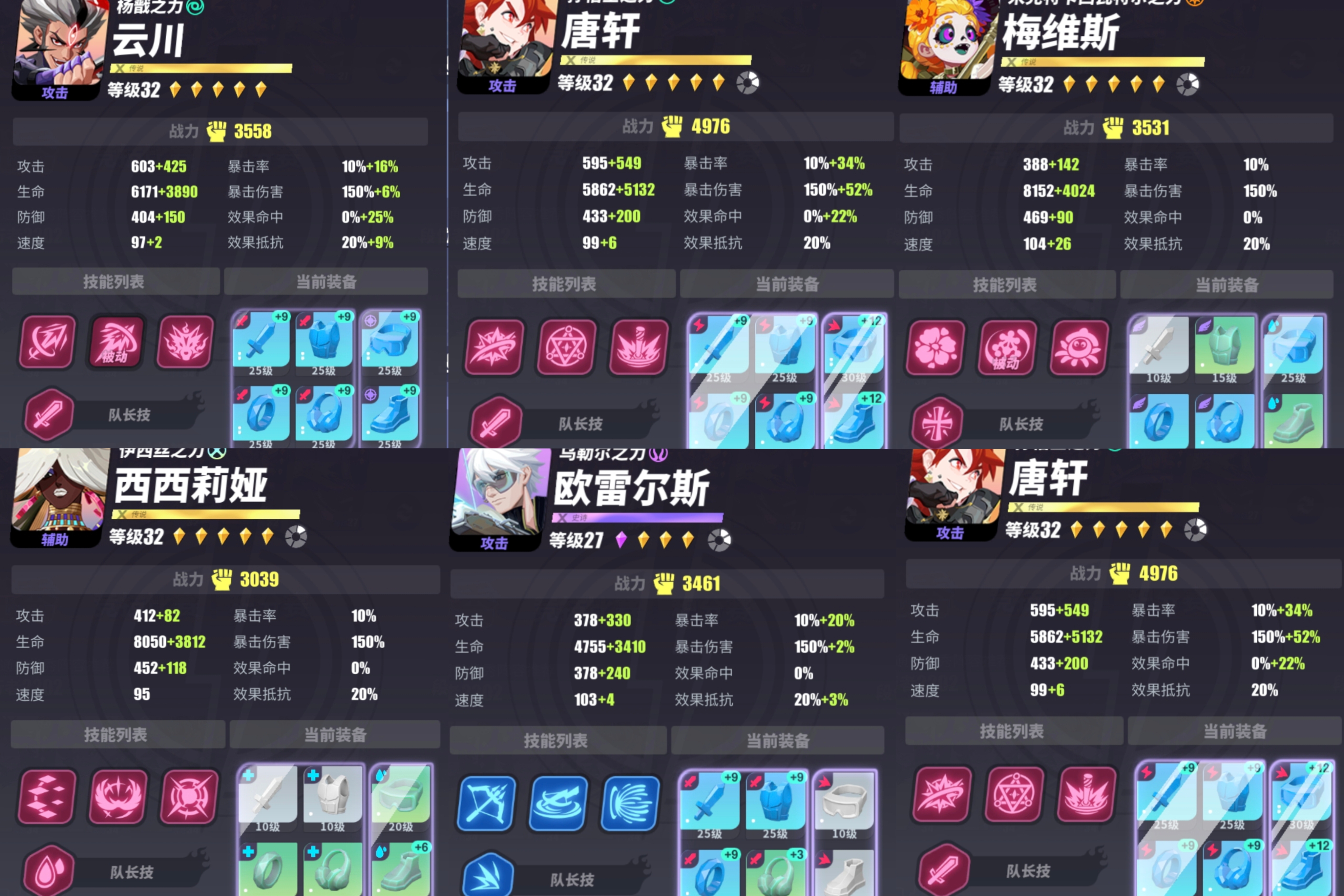 最后搭配伊西丝,伊西丝拥有全体复活+全体净化效果,可以说是所有阵容的首选万金油T0辅助了。