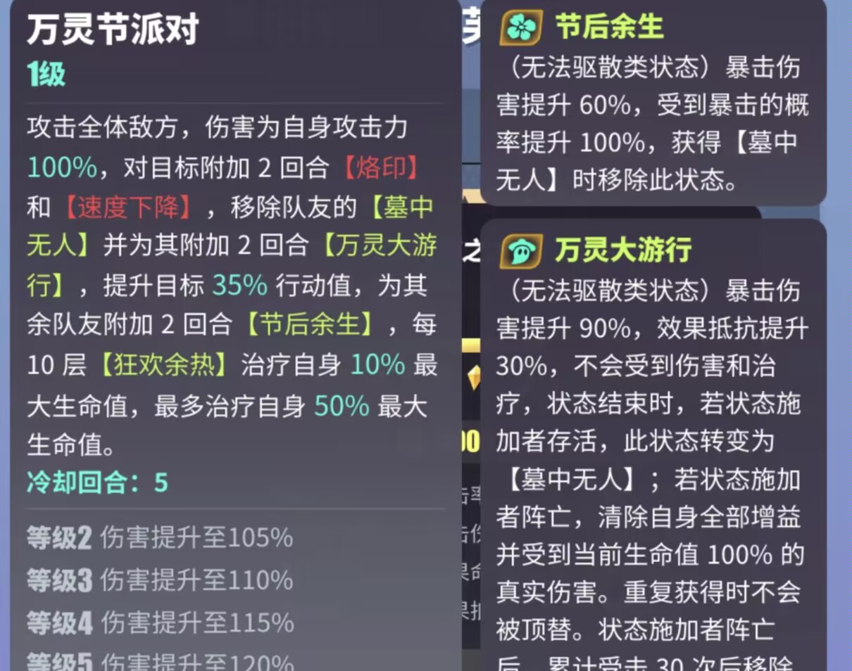 被动技能可以为目标附加【失手率提升】暴击还可以让哮天犬进行协战攻击。