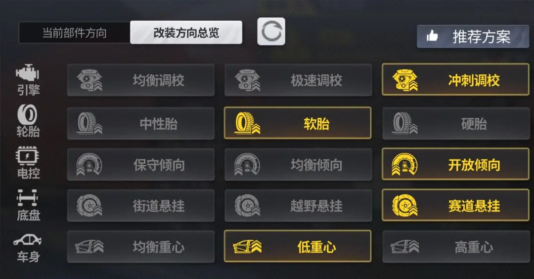 奥迪TTS Coupe '19作为一辆属于弯道的性能小钢炮,小极更倾向于在弯道释放它的性能,因此调校的目光主要聚焦于减少漂移时的速度损失以及提高出弯时的加速度,因此在引擎调校与电控调校上小极分别选择了冲刺调校与开放倾向。而轮胎、底盘和车身调校方面,小极刷圈测试下来发现更适合小极的分别是软胎、赛事悬挂和低重心。
