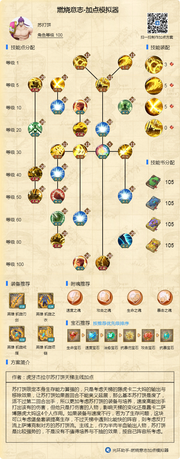 如果装备与速度不行,则为了生存问题,这块可以考虑堡垒套装提高生存,不过天梯中遇到比自己快的阵容,不被控制,就玩反杀流利用被动几率解控,不过你遇到培养度的阵容与玩家,推荐大家玩萨博克制对方的苏打饼流。萨博奥义减魂苏打饼不能开奥义,那么他就废了一半了,剩下就看阵容的输出与控制情况。主线上,作为半肉半血输出人物,苏打饼是比较强势的,不是没有不值得培养与不抽的效果,按自己阵容所考虑,更加使考验大家装备属性。