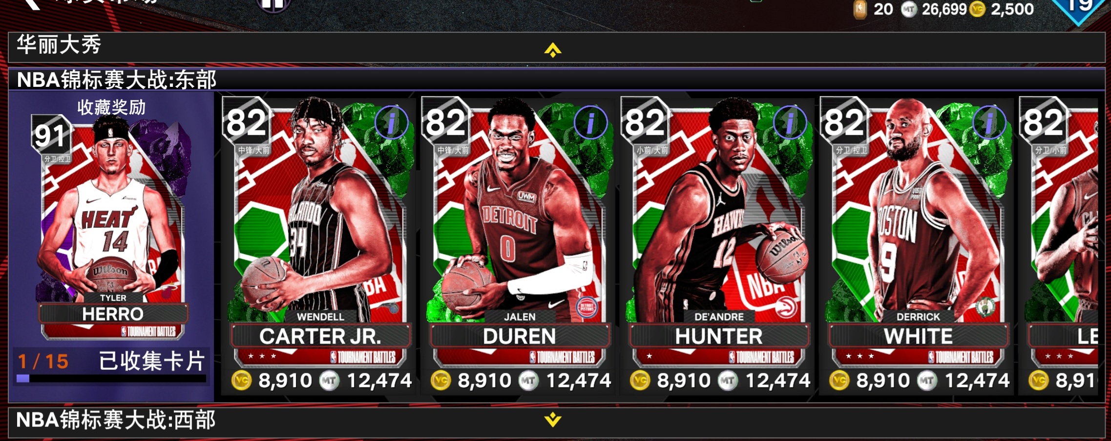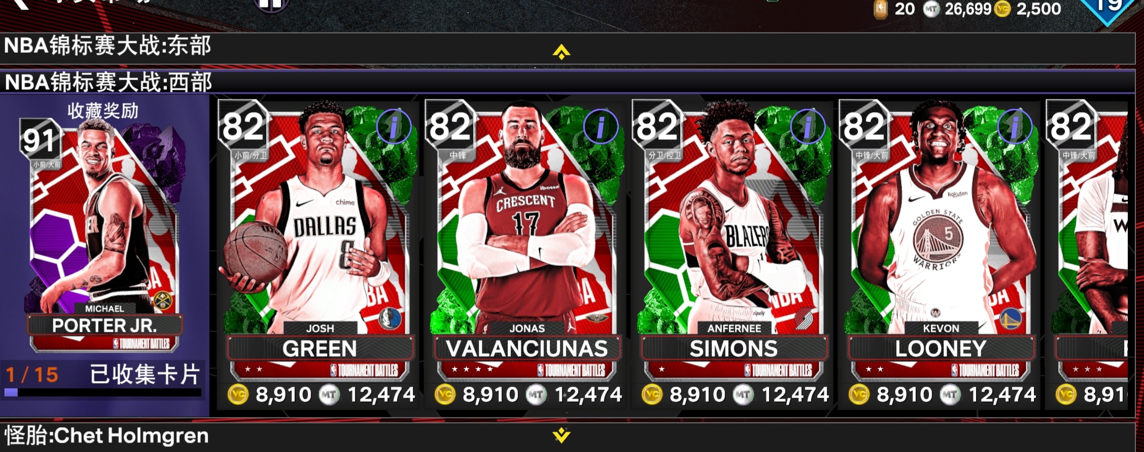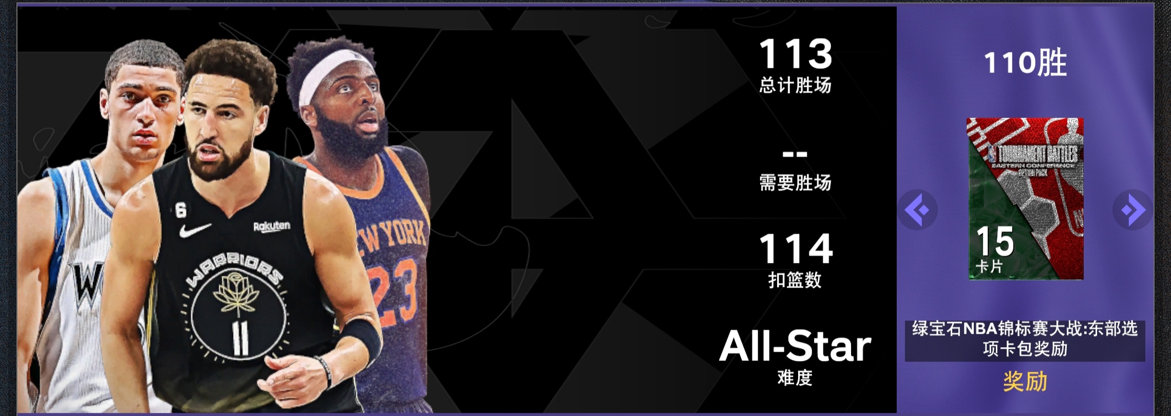 tips:看完 开荒指南 part 1 的兄弟们应该知道什么是突破系列球员了,这里不再赘述,不知道的兄弟请移步至 开荒指南 part 1 ,关于 NBA 锦标赛大战系列球员我在下文也给出配图,这两个任务其实也很好拿,一场 半职业临时挑战 即可快速完成。
