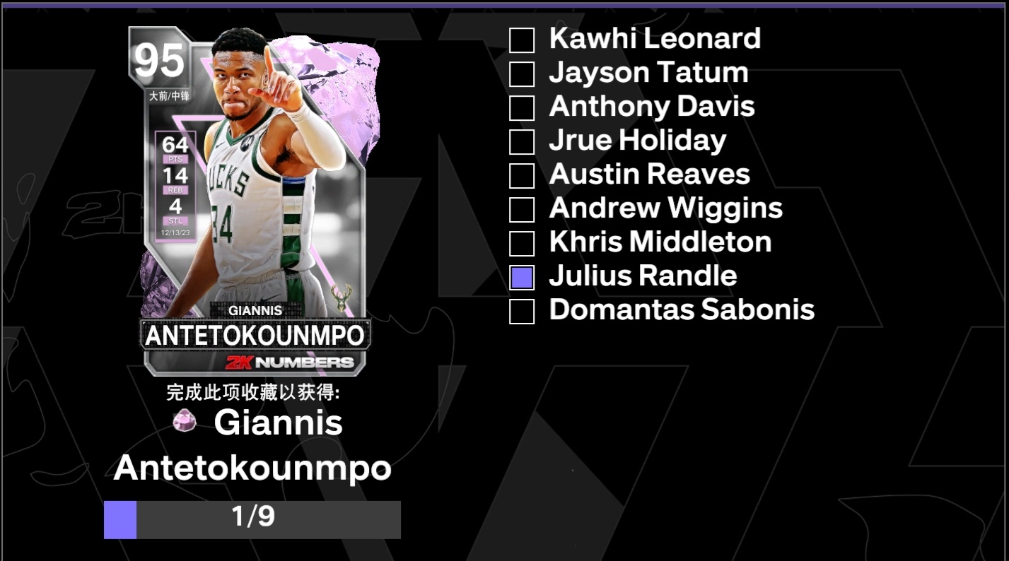 tips:6 个任务其实不多,关于 闪耀一季:补充卡 Bill Russell (指环王) 的获取 可以看我的第一篇帖子(写得很糙),前 5 个任务,我本人是打称霸赛赚 MT 的时候顺手完成的将 Bill Russell (指环王) 、闪耀一季:旧日 红宝石球员首发,进攻 红宝石球员 挡拆助攻 Bill Russell (指环王)扣篮,防守时,操作 Bill Russell (指环王) 抢篮板 和 防守盖帽,这样可以 1 - 4个任务同时进行。在线关键时刻可以输 但是要打,为避免被禁止在线 关键时刻比赛,建议在线比赛使用手柄,据我所知在线比赛无法调出虚拟手柄。2K 亲儿子 粉钻 字母哥碎片 +1(1/9)