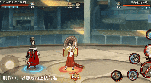 点击一次奥义键并划普攻,冬日花火身上散发白色查克拉,并消耗一格能量使用对应花色的自创招式。