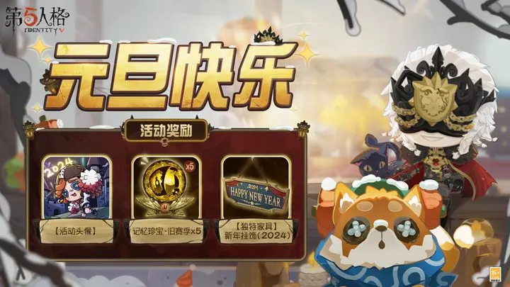 1月1日0点,庄园大厅和归宿内都会挂上新年灯牌,与灯牌合影后分享即可获得【记忆珍宝·旧赛季×5】。烟花秀也将同步开启,可前往限时公共地图-“雪夜狂欢”/归宿大厅-迷雾山庄欣赏~