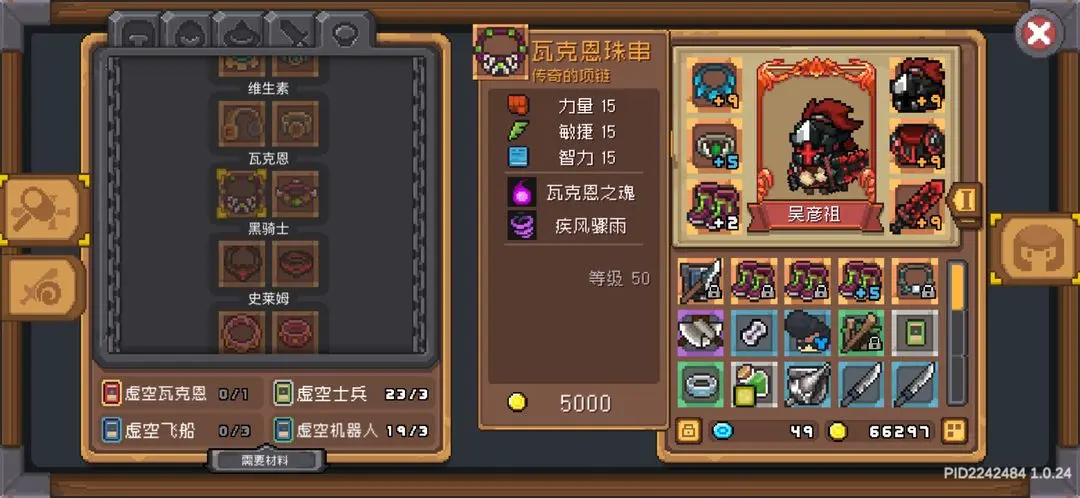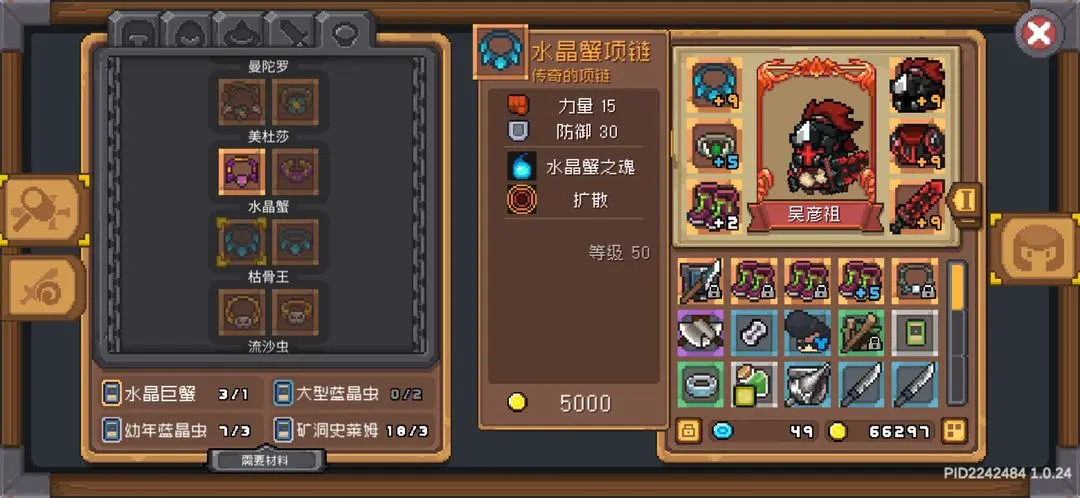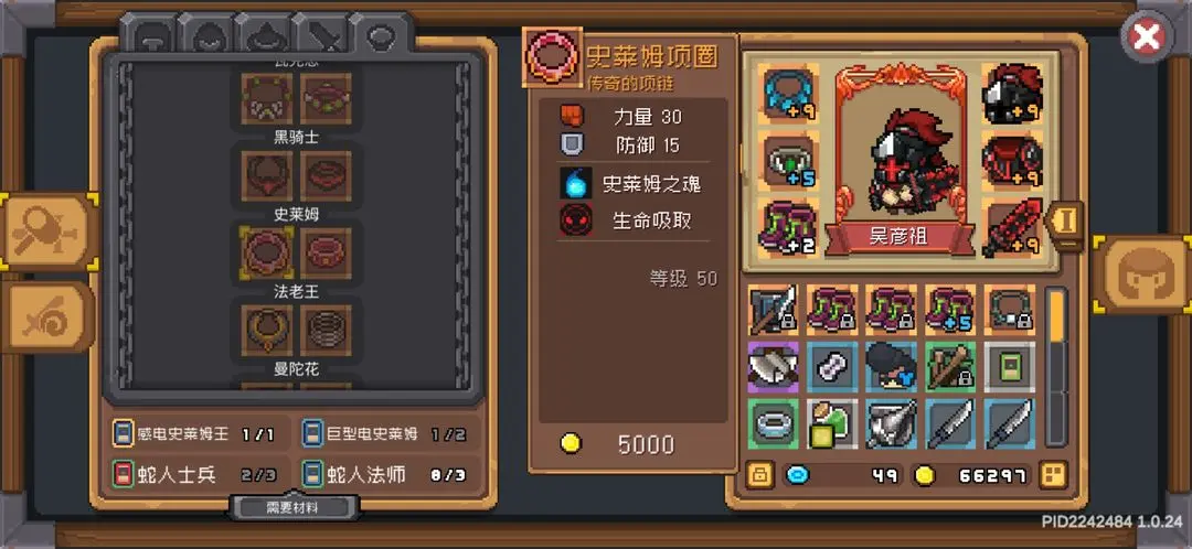 项链可以用黑骑士,也可以用史莱姆,水晶螃蟹,瓦克恩代替