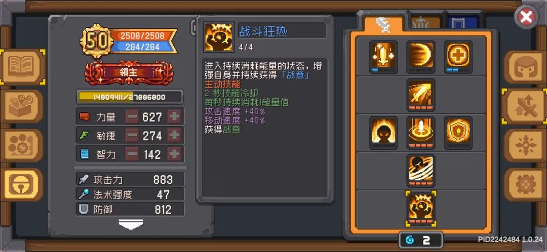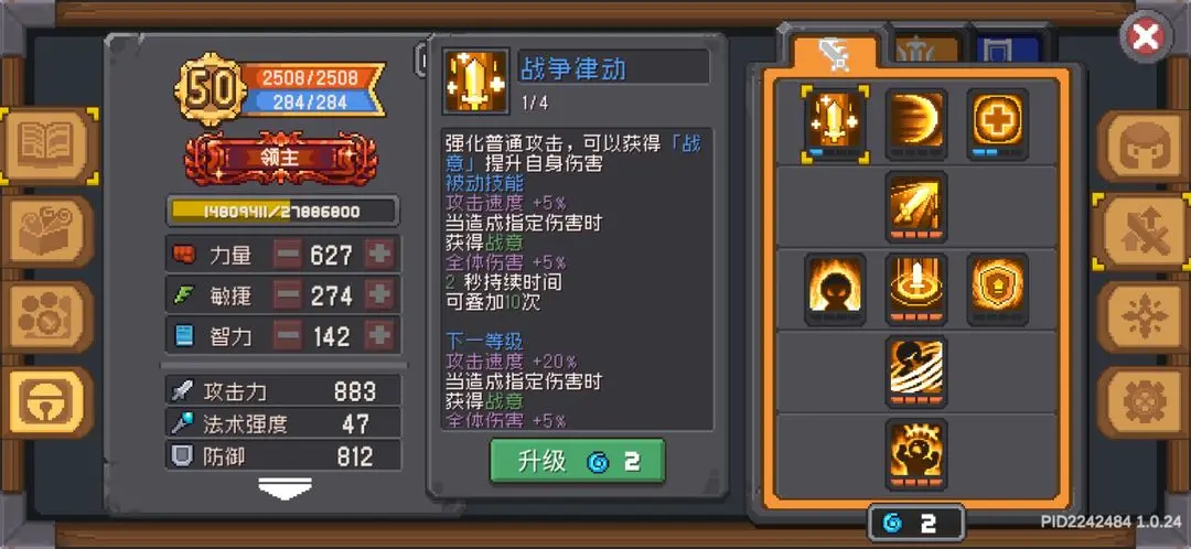 技能一定要点战斗律动(点一下就行),叠满白嫖50%全体伤害