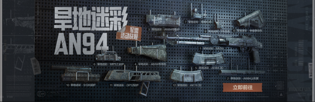 活动期间,通过军需卡参与,有机会获取到AN94系列配件涂装,感兴趣的先锋可以前往商城查看!