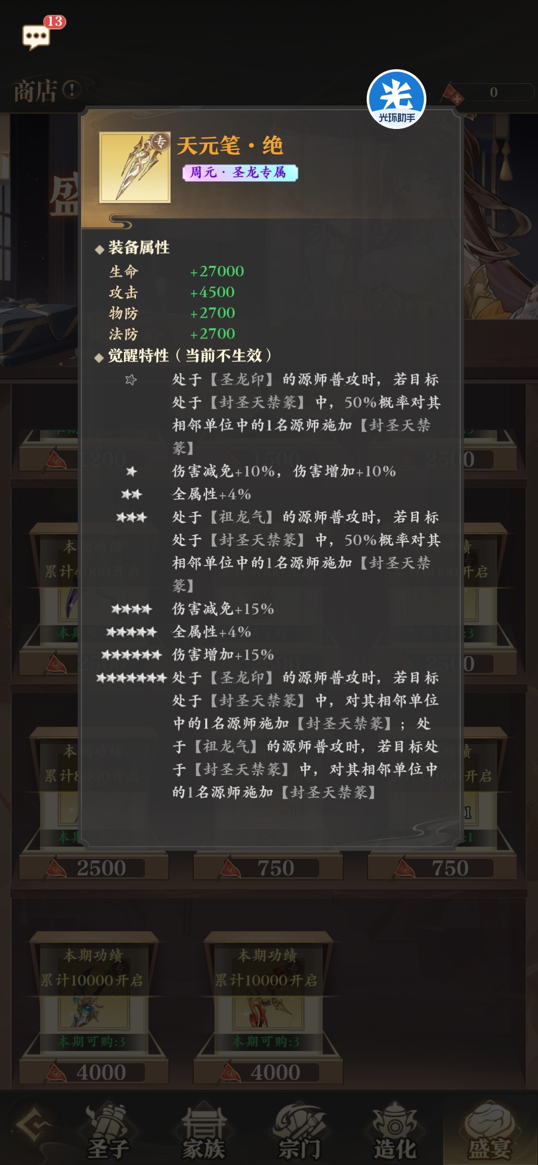 核心特性1:我方【圣龙印】源师攻击处于【封圣天禁篆】的敌方源师时,50%/100%对其相邻1人施加【封圣天禁篆】。