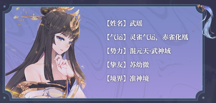 而游戏之中,武瑶是与苏幼微一样担当陪伴新手玩家开局期的职业打手,是作为玩家第一只金卡白给入队的,后面还可通过苍穹氪金、七日签到获得大量角色本体碎片,是与苏幼微一样的最好搞的金卡天花板角色之一,甚至不用氪金就可以得到,并且角色评价是远高苏幼微的在前期仗着星级优势,以及攻辅一体的单暴,高单伤碾压整个前中期,是多少对位角色的恶梦。