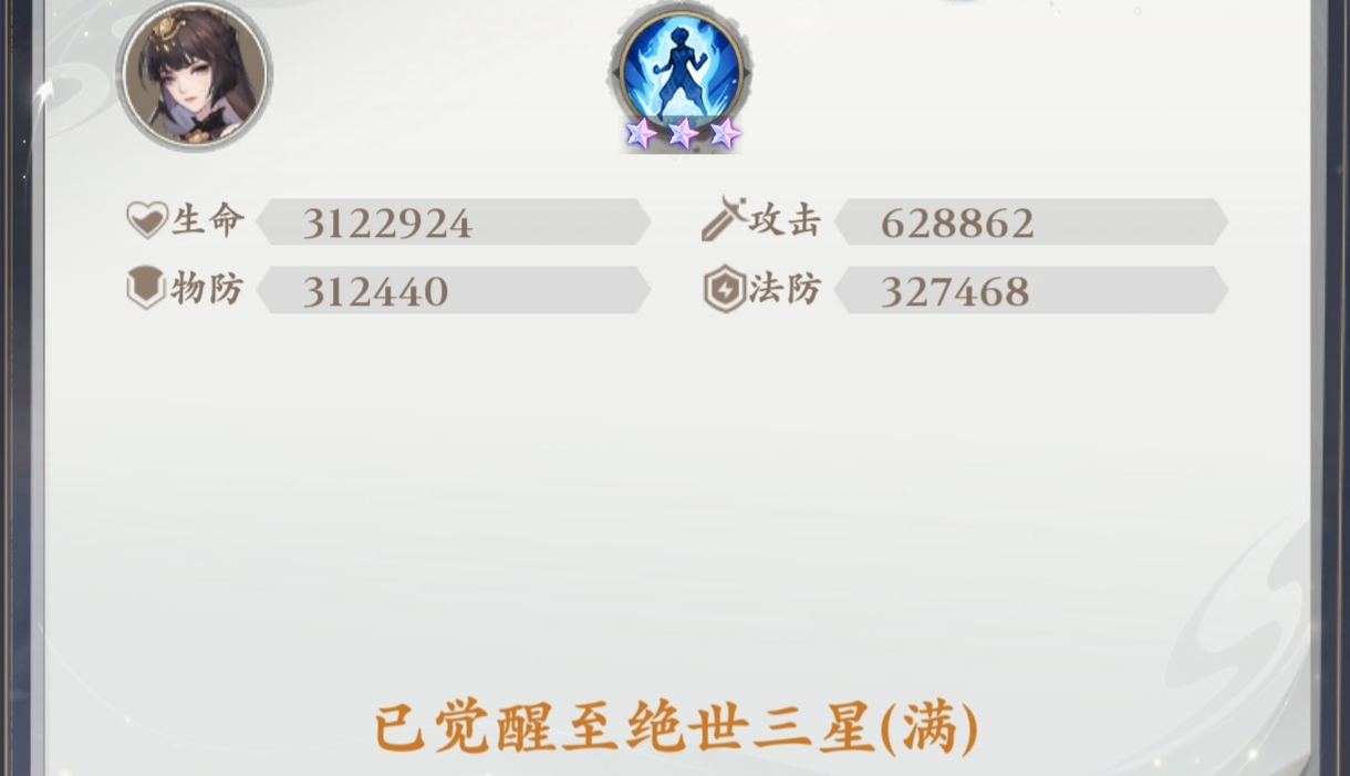 绝三效果就有点拉了,作为最后花最大代价得到的升星也只起到一个稳定印记的作用,使印记不在会被驱散,算是制衡净化类或驱减益boss敌人的一种对策手段,就是太软了,实际作用与升到绝二没太多区别,就是多了在特定情况上场的空间,升绝三就要考虑一下是否值得,利损互推一下吧,毕竟资源都挺紧的。