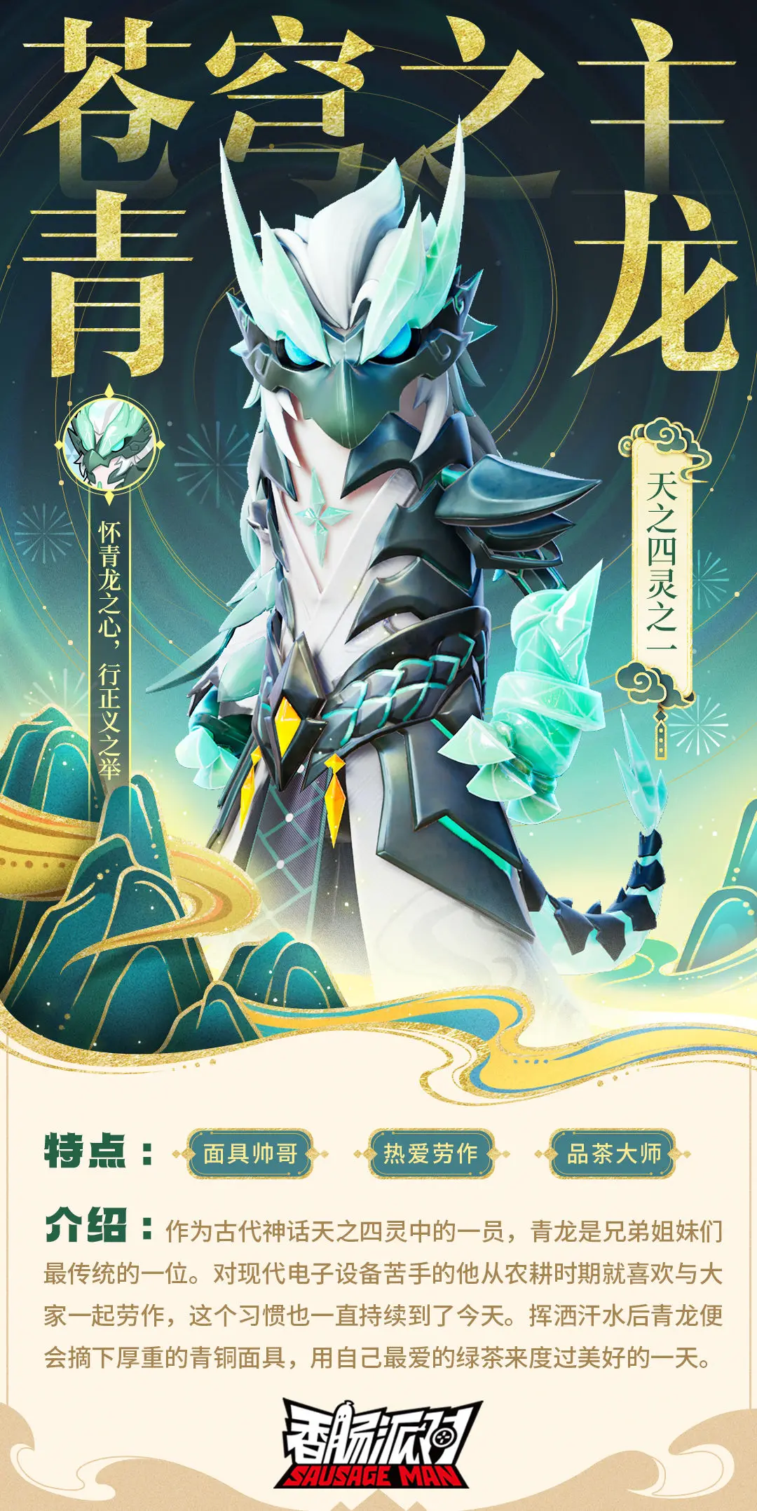 【SS13爆料】苍穹之主-青龙:热爱种田的传统帅哥香肠派对 - 新闻星发布于 2023-12-26关注作为圣兽中出场最多的中坚力量,圣兽青龙其实非常单纯,为了防止脸太好看而被敌人轻视,青龙戴上了威严的青铜面具,隐藏起了他的帅气面貌。从远古的蛮荒时期到今日的繁华盛世,青龙一直热爱劳作,他经常变身成为肠肠与大家一起种田,在农作物收获过后,青龙会邀请伙伴们品上一杯自己亲自沏泡的绿茶,用清香为劳作画上圆满的句号。