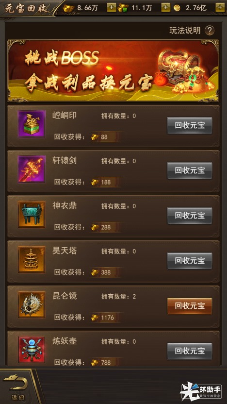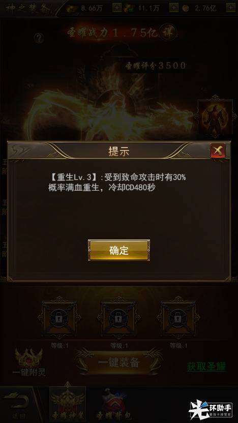 【特色强力神装、免费获取重生、变身神技】