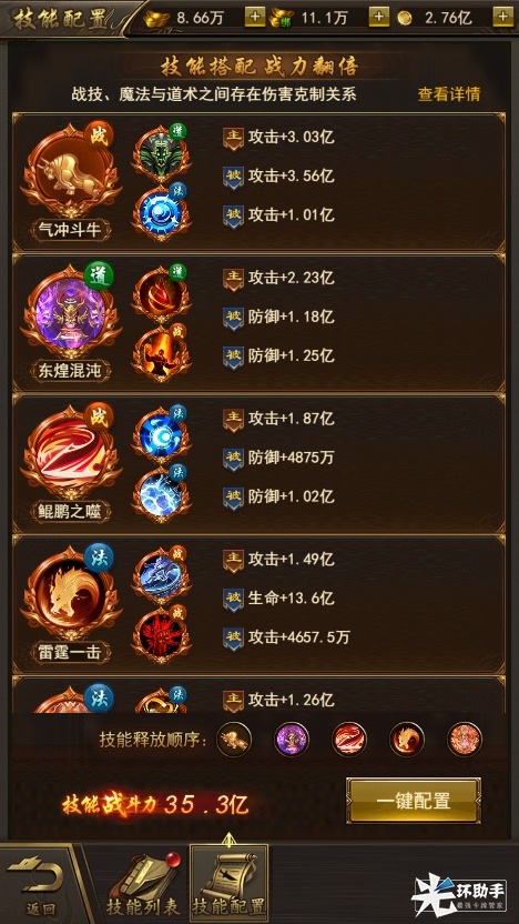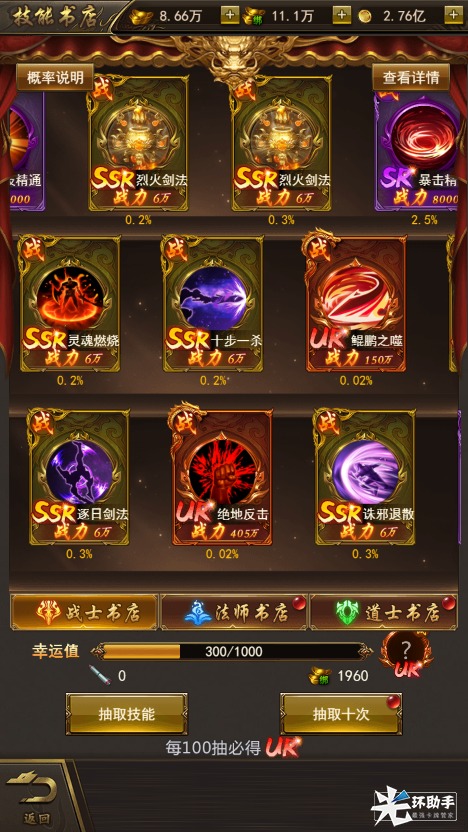 开局完成主线任务即可获得大量元宝,开启新服助力、开服庆典、开服兑换码等活动后,可获得大量技能抽奖券,在技能商城内抽取大量强力技能,每100抽保底获得UR技能,让你前期就成为逆天战神。稀有的回血技能,强力的反弹神技!给你的战局带来决定性的逆转!