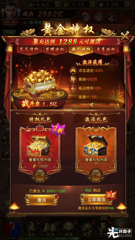 解锁黄金特权后还可解锁永久速提升、爆率提升,无论是PVP还是PVE都让你领先别人一大步!