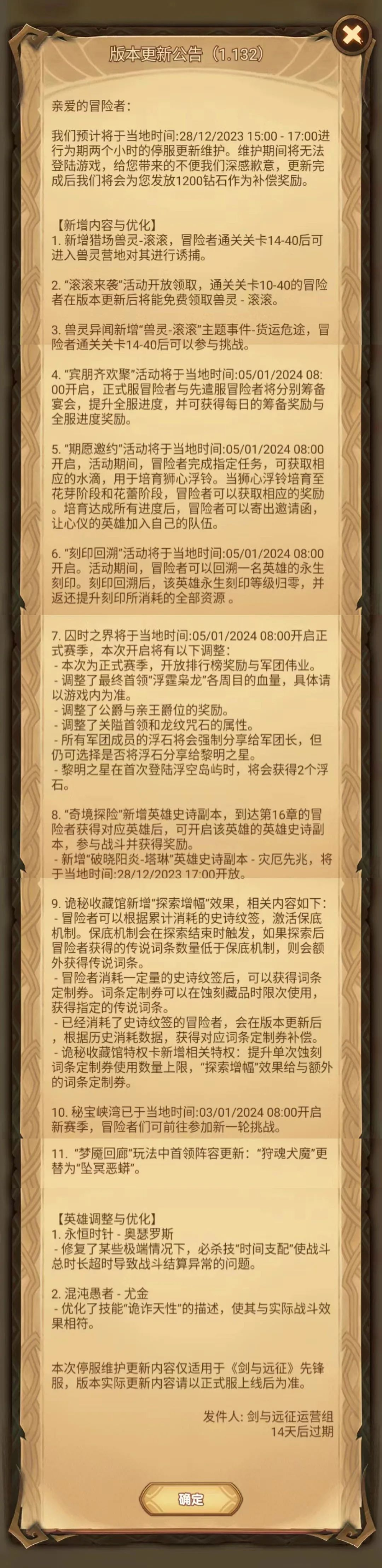 -新增“破晓阳炎-塔琳”英雄史诗副本-灾厄先兆,将于当地时间:28/12/2023 17:00开放。
