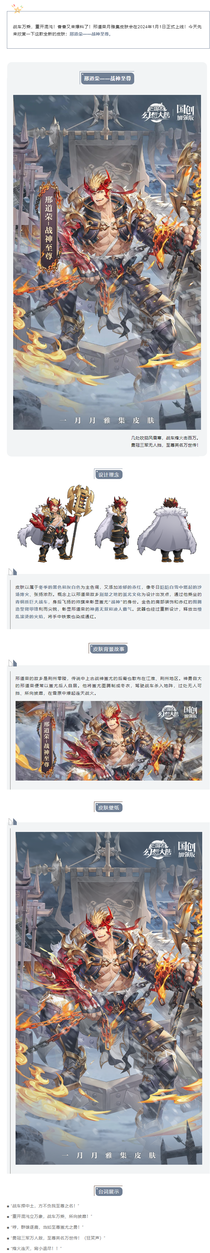 皮肤鉴赏 | 1月月雅集皮肤邢道荣「战神至尊」即将上线!