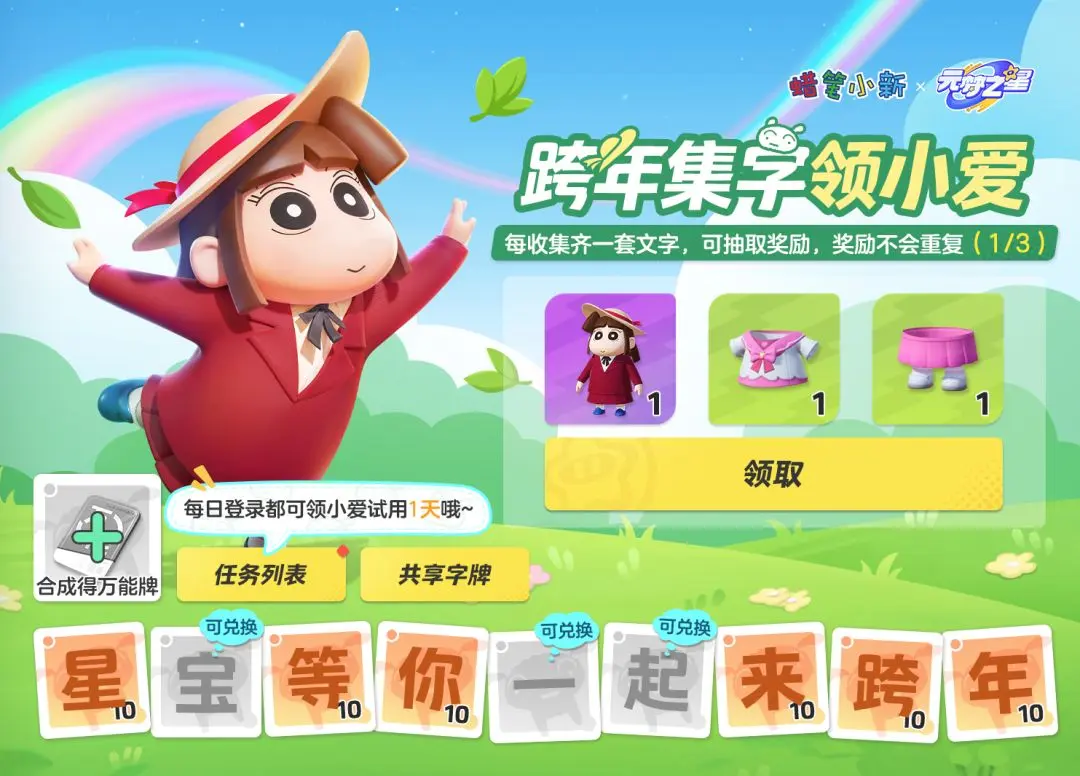 星妹敲黑板!摊牌了~摊牌了~正版联动小爱时装免!费!领!取!!!跨年集字领小爱,各位星宝务必来~