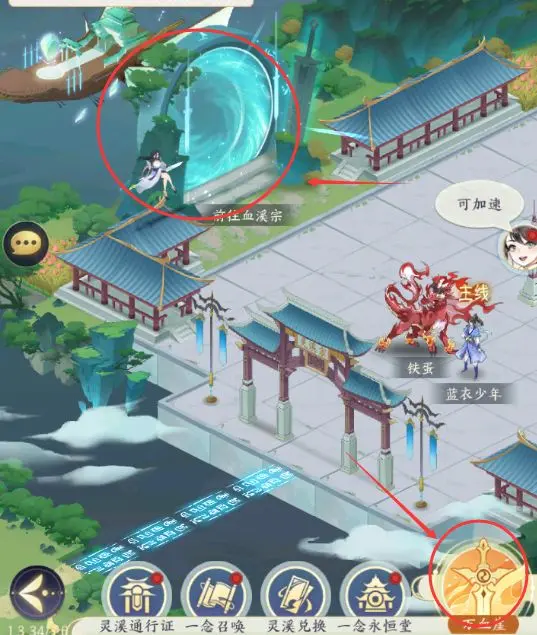 联动活动开启后,道友可通过游戏主界面左上角「一念永恒游」进入活动地图中。