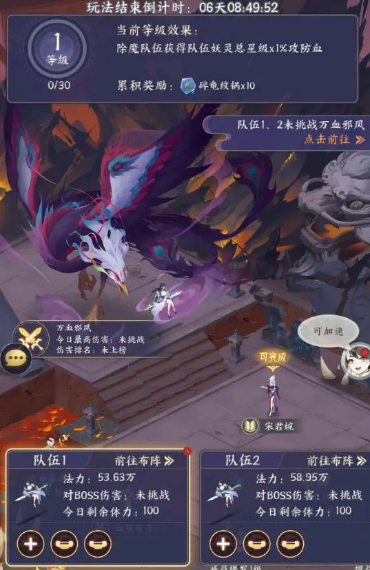 2.挑战队伍初始拥有100点体力,每次挑战血兽后消耗20点体力,体力次日凌晨5点恢复至100点