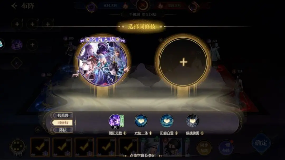 少侠在布阵界面即可选择添加技能出战,羁绊技能可配置于出战队伍,在战斗中生效,提升羁绊技能等级可增加全局属性和技能效果。
