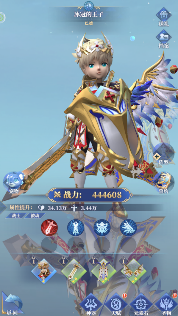 不同的元素石通过挑战不同的元素塔获取,天赋碎片可以通过高级主线获取,多余的天赋碎片可以用于升星提高英雄的基础属性。