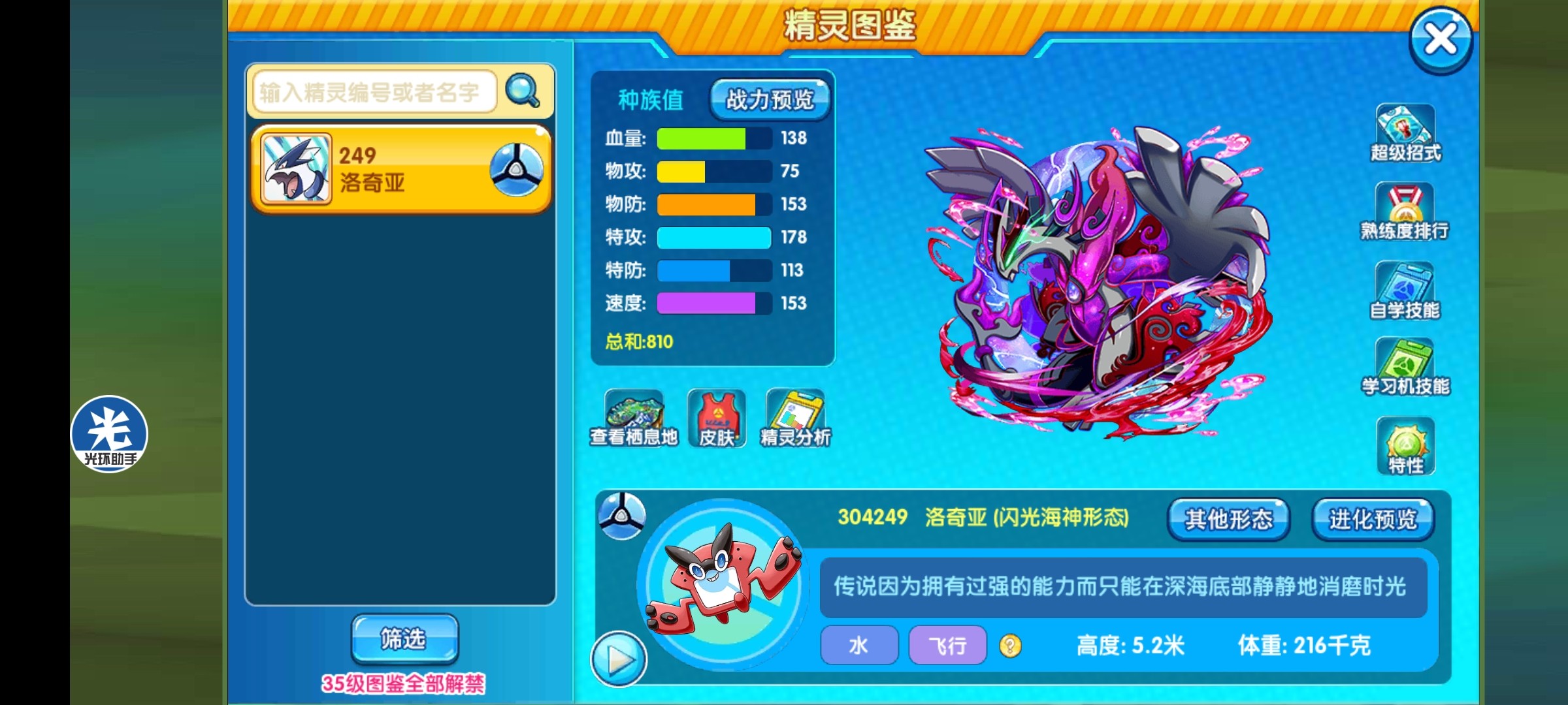 大家好,我是@白,洛奇亚是口袋世界传说中的海神,拥有掌控气流的力量,在复刻中洛奇亚真可以说是复刻亲生的,在远古版本,它是第一只开放mega形态的宠物,也是第一只9999的闪光,凭借对焦+空爆高概率的暴击,被玩家戏称为万能许愿机,后来随着版本更新慢慢落伍,复刻专门又给了爆诞形态和新专属让其再度崛起,现在因为爆诞形态的落寞,其海神形态又再度回归,本期,我们就给大家讲解下海神洛奇亚的玩法攻略。