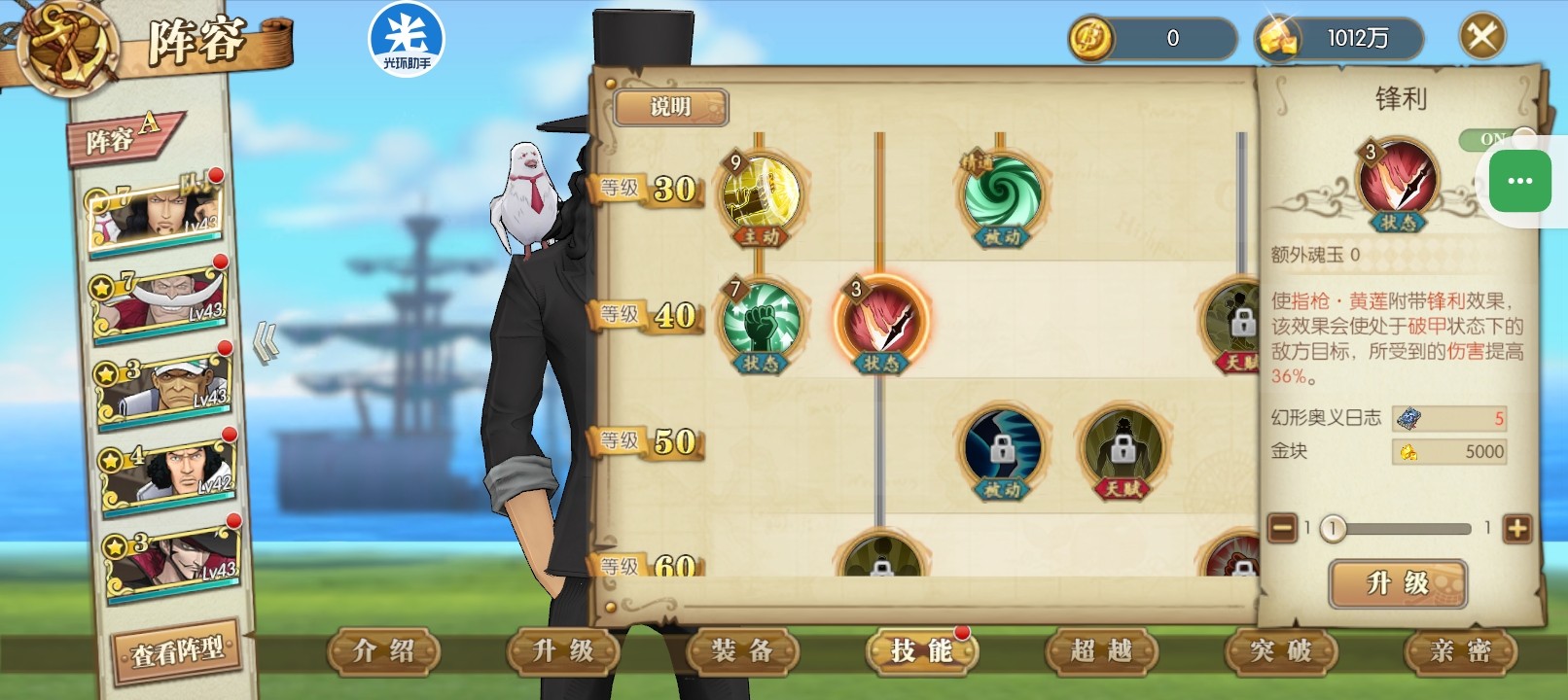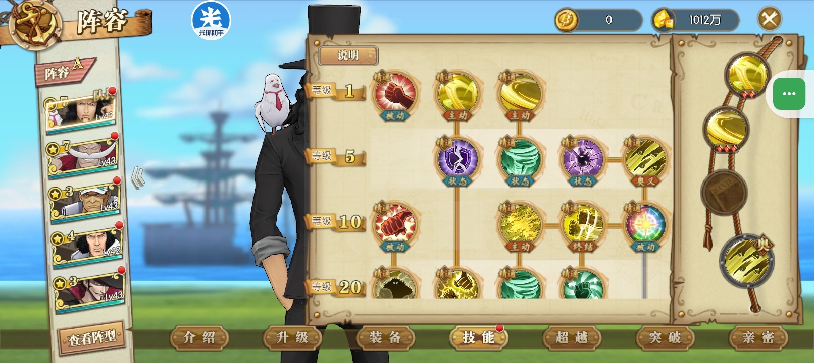 人物培养方面推荐白胡子6星、鹰眼6星/8星、赤犬3星、豹子8星、青雉6星(白嫖)、艾斯6星(白嫖)。