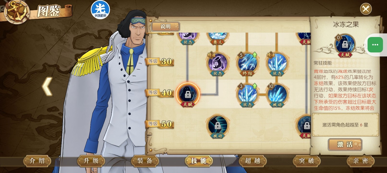 ②卡普:仅次于赤犬的定位,卡普属于40/60级依靠装备进行肉坦度提高,卡普核心是奥义给团队提高免伤机制,能自奶前排抗伤害辅助团队的角色,偏60级才发挥实战效果。搭配玩海军流阵容。