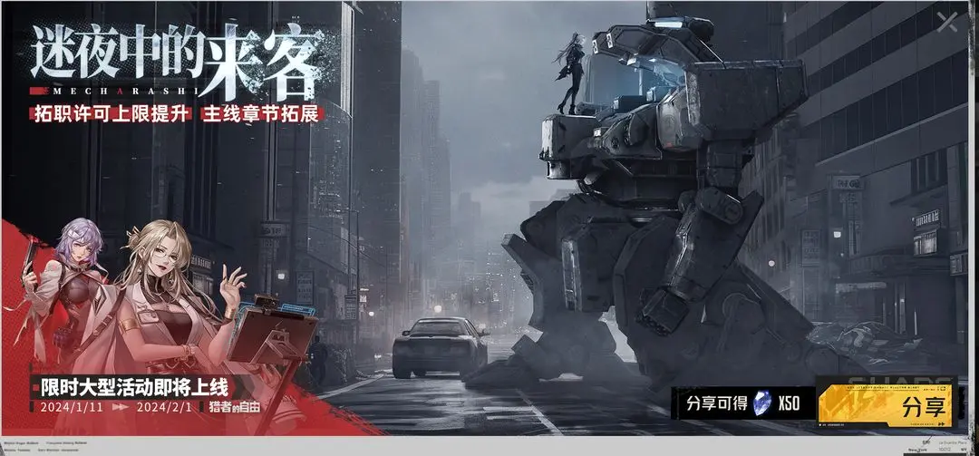 2.分享活动“迷夜中的来客”将在1月4日维护后-1月11日4:59开启;活动期间,指挥官分享版本海报可领取分享奖励:纯晶*50;