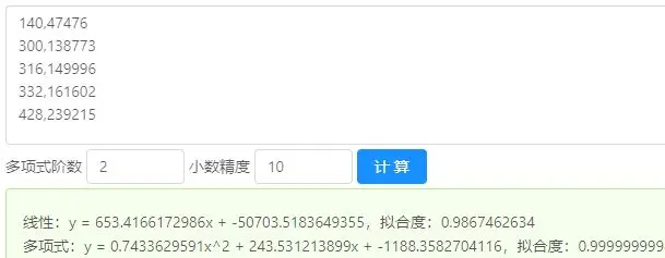 五个点对二次函数的拟合度接近1,这个拟合结果基本可以确定就是二次函数了。