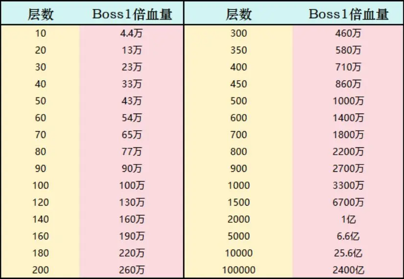 也就是说,爬塔BOSS血量的数据是在二次函数增长的基础上,根据不同BOSS再乘个系数。