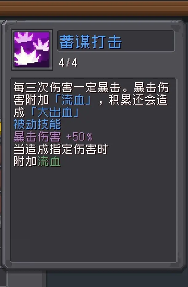 唯一核心输出技能,必满。加高额爆伤,大出血百分比伤害,配合高hit的箭雨,频繁出血。不多说。
