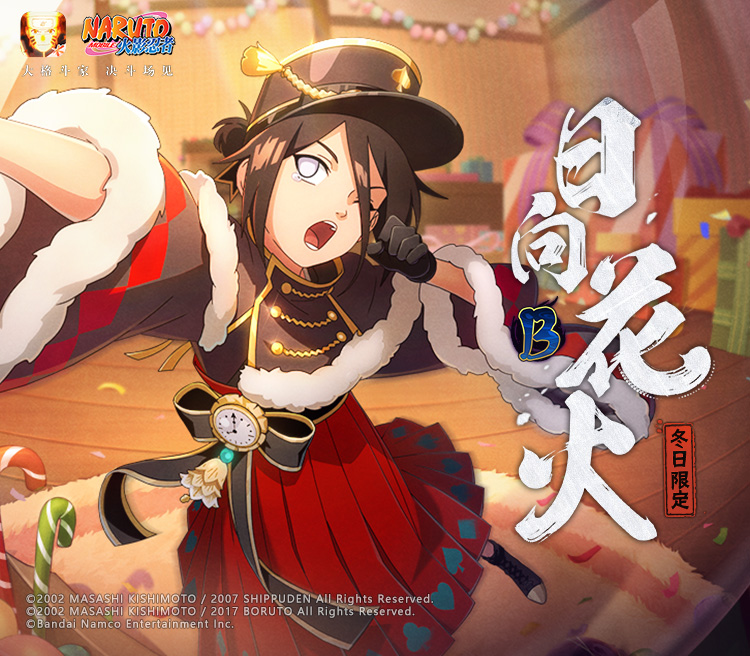 2、冬日花火有一个小彩蛋,保持原地不动15秒,冬日花火会举起糖拐杖做出狙击的动作攻击敌人,造成两百多万的伤害,如果是白眼状态则直接秒杀敌人,造成三百多万的伤害,不过实战中是用不出来的,没人会15秒不攻击你