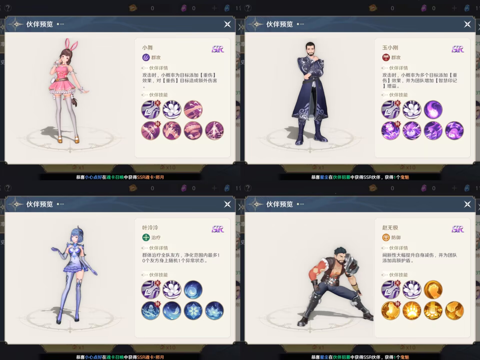 重伤阵容是狮子最优先推荐新手玩家选择的阵容,特别是对于0氪玩家来说,这套阵容发育性价比无疑是最高的,不仅强度高,获取也简单。因为小舞开局可以送,而且后续在【拟态修炼】也可以获得碎片,玉小刚也很好抽出来,开局十连抽大几率就能抽出来。叶冷冷第二天签到就可以送。