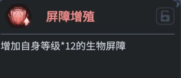 这个技能比较特殊,生物屏障嘛,和真实伤害对等,可以用来克制真实伤害,理论上来说屏障可以挡所有类型的伤害,除了无视伤害减免类型。屏障这个属性想叠高比较困难,但是叠一些还是可以的,有效降低持续性伤害。比较适合自身自带减伤的怪兽和按照自身生命上限来发挥技能用处的怪兽,比如说蜃兽、冥龙王、剧王等。
