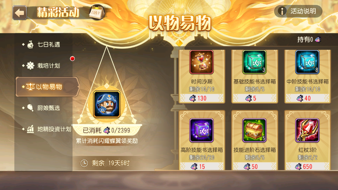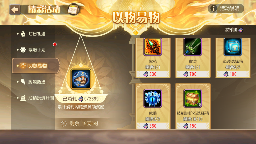 (4)“闪耀蝶翼”可用于在“以物易物”活动中兑换奖励。