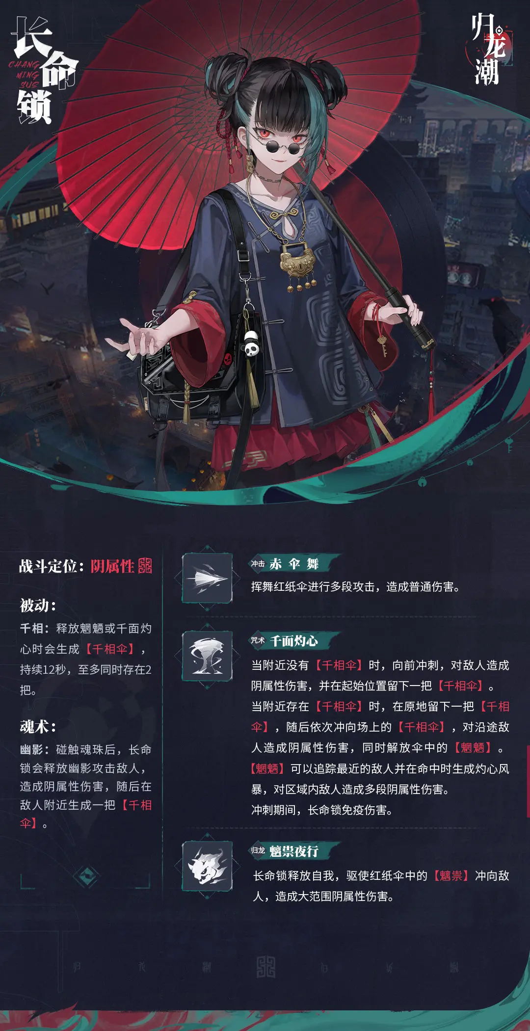 龙胤档案 | 「长命锁」角色演示光环资讯 - 二次元发布于 2024-01-03关注哦?你也想要典当自己的心吗?——「长命锁」角色演示“舞伞做戏化魑影,身引魍魉祸万敌。”尽管很多人对这位古灵精怪的少女恨得牙痒痒,但只有极少数人敢和长命锁起冲突,因为那些被她“典当一切”、陷入无尽折磨的敌人就是前车之鉴...... 等待上传中... 视频上传中…100% 视频上传失败,请重新上传 重新上传 更改封面