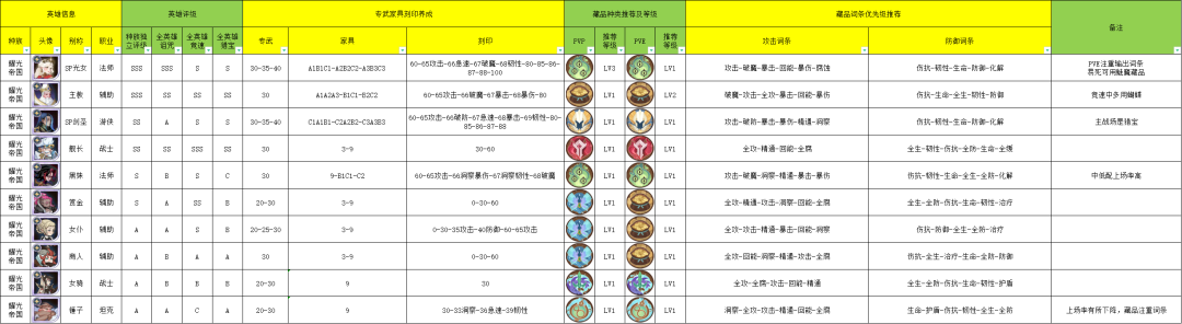 2、该攻略非全英雄攻略,是我根据数据和个人理解筛选出来的英雄,未列出的英雄要么无需培养要么用途极少要么还未开发,攻略内英雄会在定期一段时间后更新。
