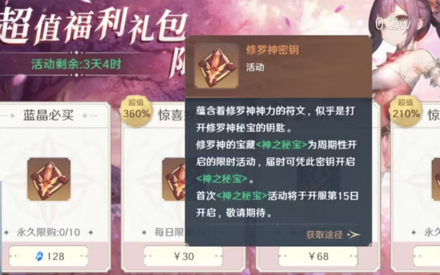 主要要说的就是【弹窗的限购礼包】对于大氪玩家来说是可以去氪的。我们升级或者做主线任务会触发各类弹窗礼包。这些礼包都可以去购买。