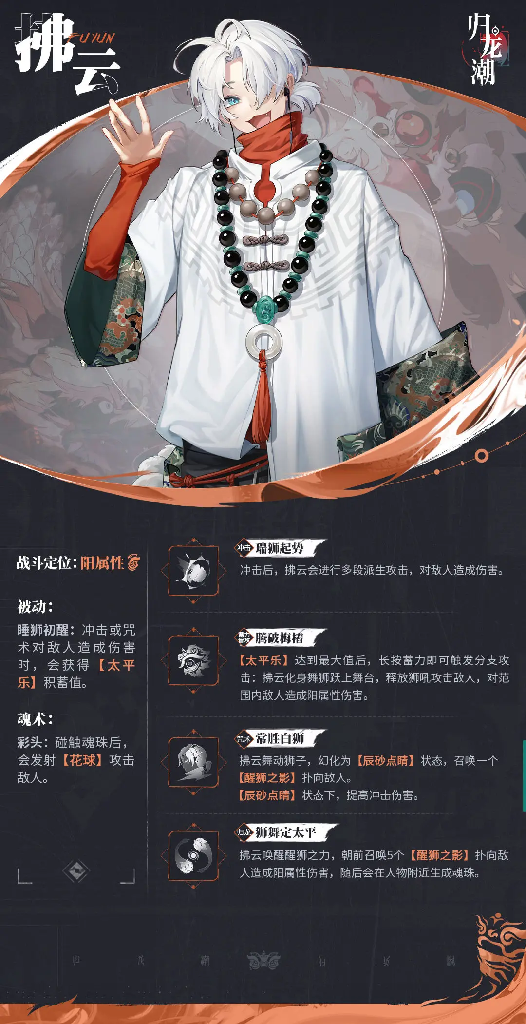 龙胤档案 | 「拂云」角色演示光环资讯 - 二次元发布于 2024-01-07关注一点睛,二点灵,三点名扬四海,四点天下太平!——「拂云」角色演示“白狮吼声掀翻天地人间,醒狮夺彩舞定天下太平。”乐观豁达的「拂云」作为文殊醒狮团的大师兄,不知为何总是两袖清风,深入了解一番原来是将钱财都用做了善事。很多敌人想来招惹这位“温驯善良”的白狮之王,殊不知这是他们做过最错误的决定...... 等待上传中... 视频上传中…100% 视频上传失败,请重新上传 重新上传 更改封面