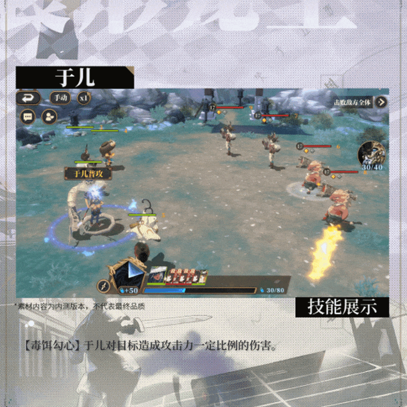 毒饵勾心:于儿对目标造成攻击力一定比例的伤害。