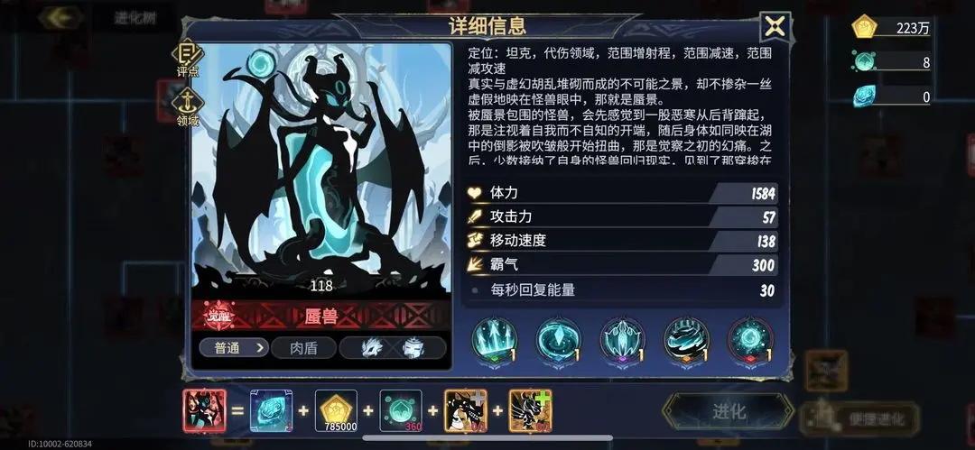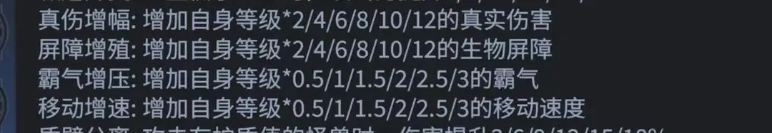 移动增速、霸气增压、恒战机能、屏障增殖分别对应着移速、霸气、体力和生物屏障的增加,这些无需多言;