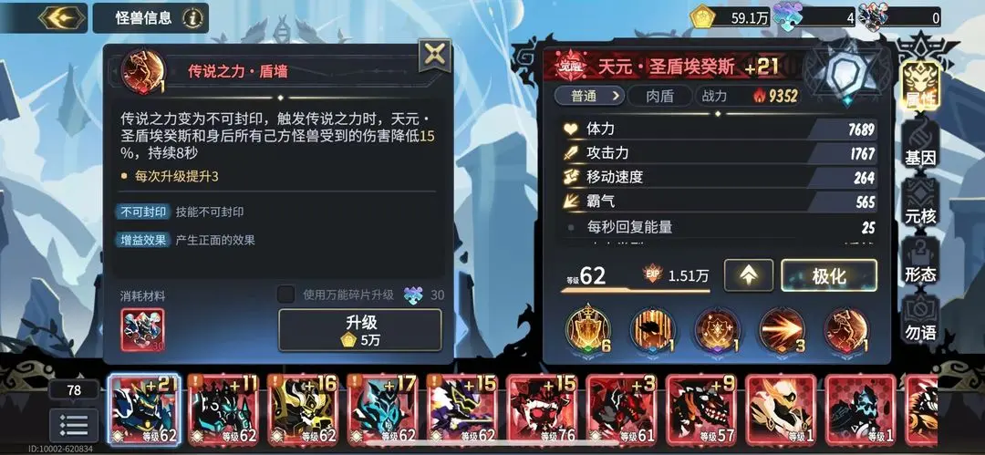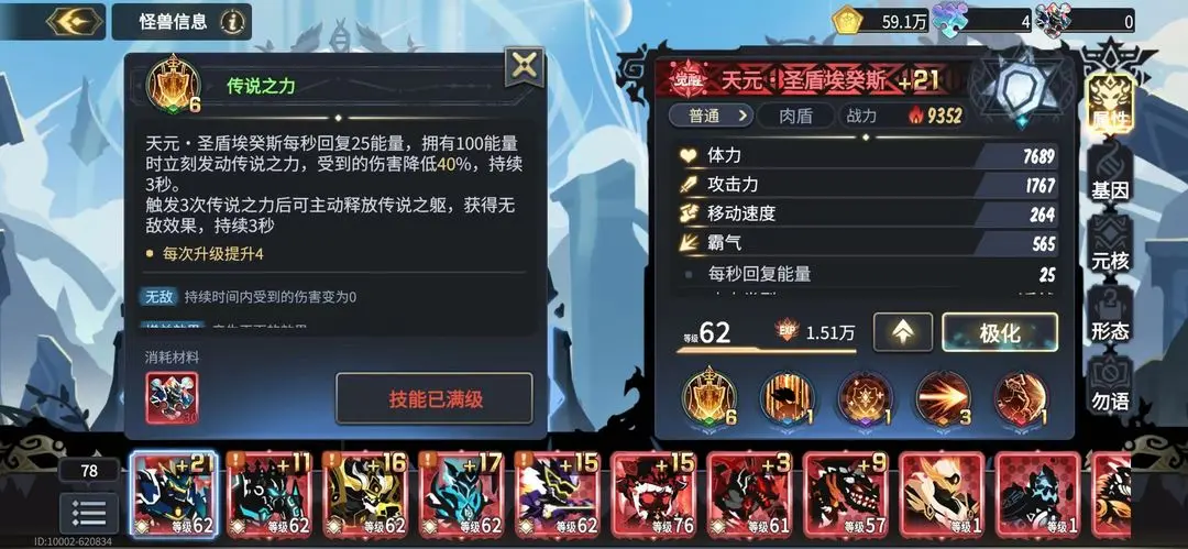 高额减伤技能配上恐怖属性面板造就了超进化大陆最坚实的盾-天元·圣盾埃癸斯!这也是圣盾能抗的最大原因,传说之躯的3s无敌金身如同锦上添花,提升了天元·圣盾埃癸斯的防护能力,在面对许多拥有高倍率技能怪兽如果运用得当时,能创造反打的契机,赢得最后的胜利。