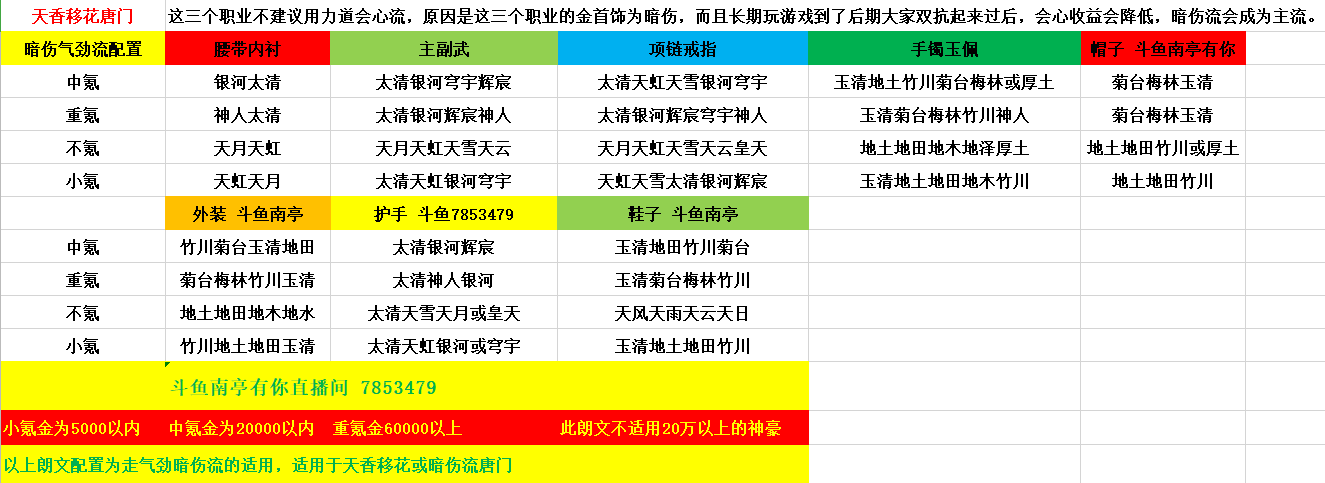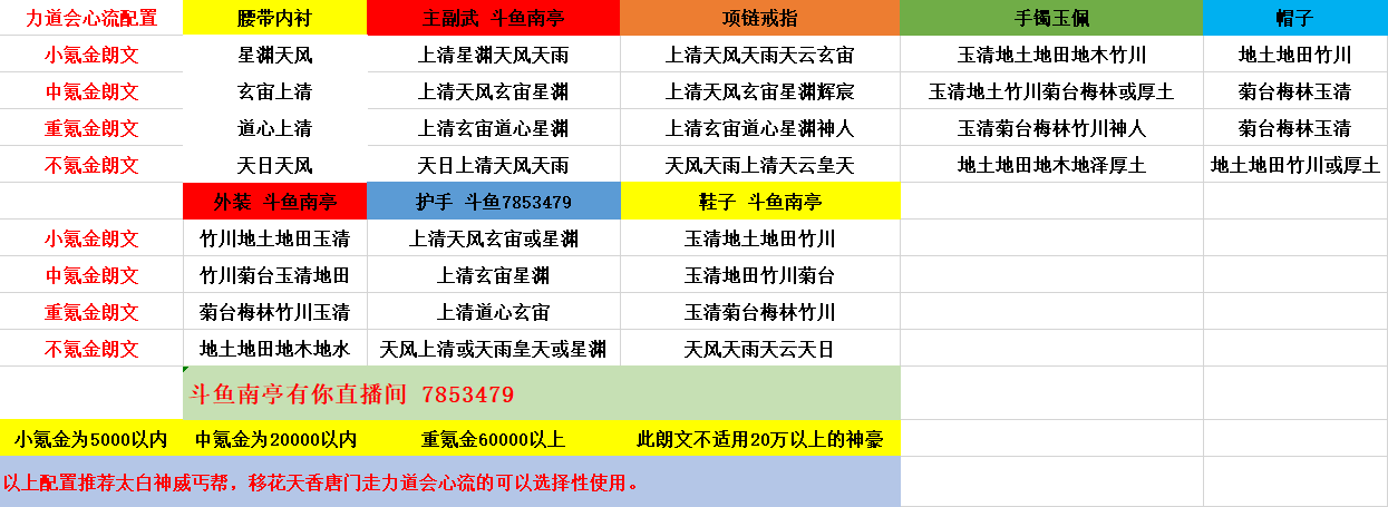 必看系列之朗文超详细搭配a.laowang发布于 2020-10-28关注大家好,我是斗鱼南亭有你,今天给大家带来一期天刀朗文搭配的详细攻略朗文分为两种,一种是力道流,一种会心流。首先力道会心流更适合于太白神威丐帮,原因在于我们等级到达61级之后,金首饰的加成,如果唐门移花天香选择了力道会心流,就少了金首饰的属性加成,收益会变得相对较低,所以推荐唐门丐帮神威走力道会心流。天香移花唐门在61级金首饰是暗伤属性,我推荐气劲暗伤流。还有就是朗文的孔随着我们等级开放而开放,每个朗文共鸣效果产生的也不一样,所以我们朗文位置一定要对,具体的朗文位置讲解可以看我另外一篇视频攻略来源:斗鱼南亭