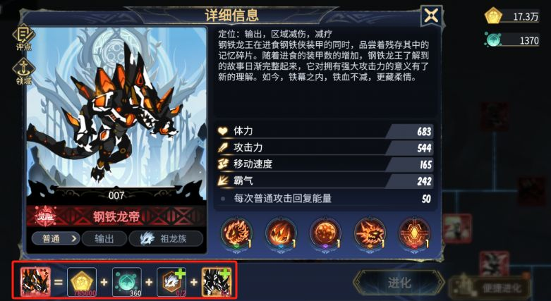 该橙色怪要升级成觉醒怪需要资源:78万金币+360进化+2只橙色龙+1只龙