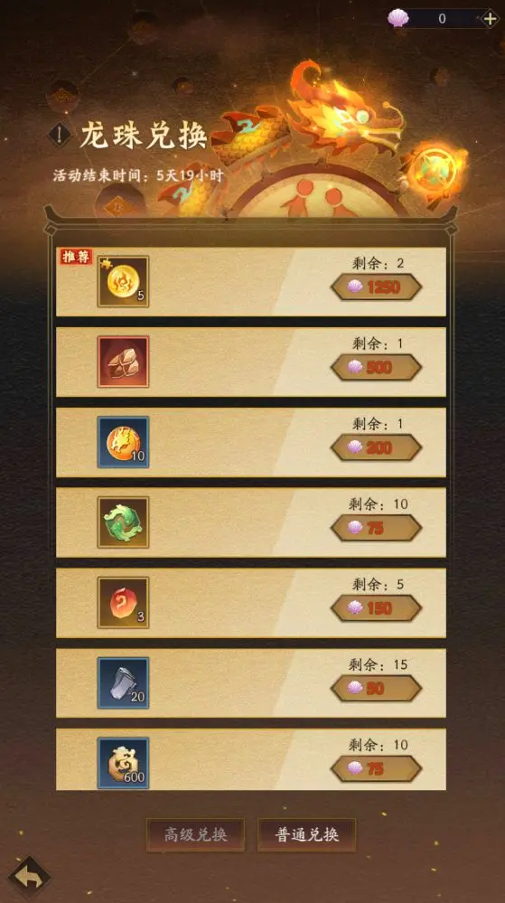 活动期间,开启限时龙珠兑换!兑换活动分为【高级兑换】以及【普通兑换】。「龙珠神贝」可在高级兑换中轻松兑换霸天龙威龙珠碎片、逆鳞、火龙珠、红品5星装备自选、幻彩石、神君令等超值好礼!「龙珠仙珍」可在普通兑换中轻松兑换霸天龙威龙珠碎片、逆鳞、火龙珠、寻宝仪等海量奖励~>ᴗ<✧