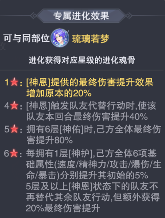 红色6星同时覆盖了PVP和长图,但是更多是为了给【神恩】10万年在5层后会替代所有其它队友行动的尴尬......效果擦屁股