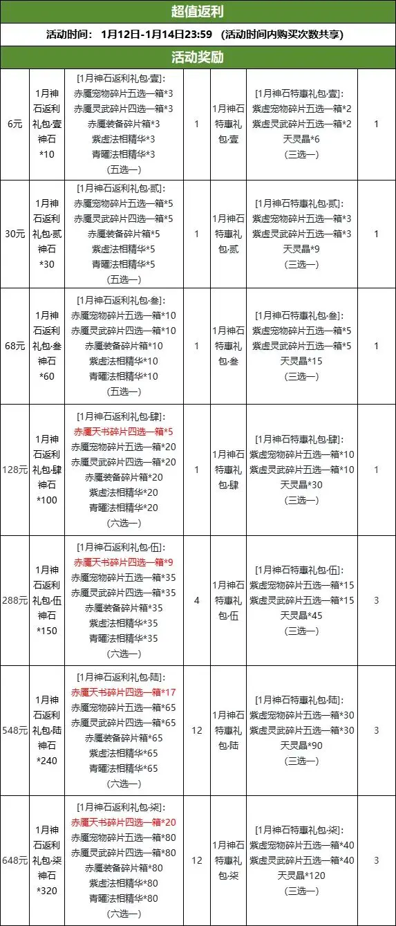 ◆ 活动内容:活动期间,道友单笔充值指定额度,即可领取包括赤魇灵武碎片箱、赤魇天书碎片箱、赤魇宠物碎片箱在内的丰厚奖励!活动期间充值次数3日共享。